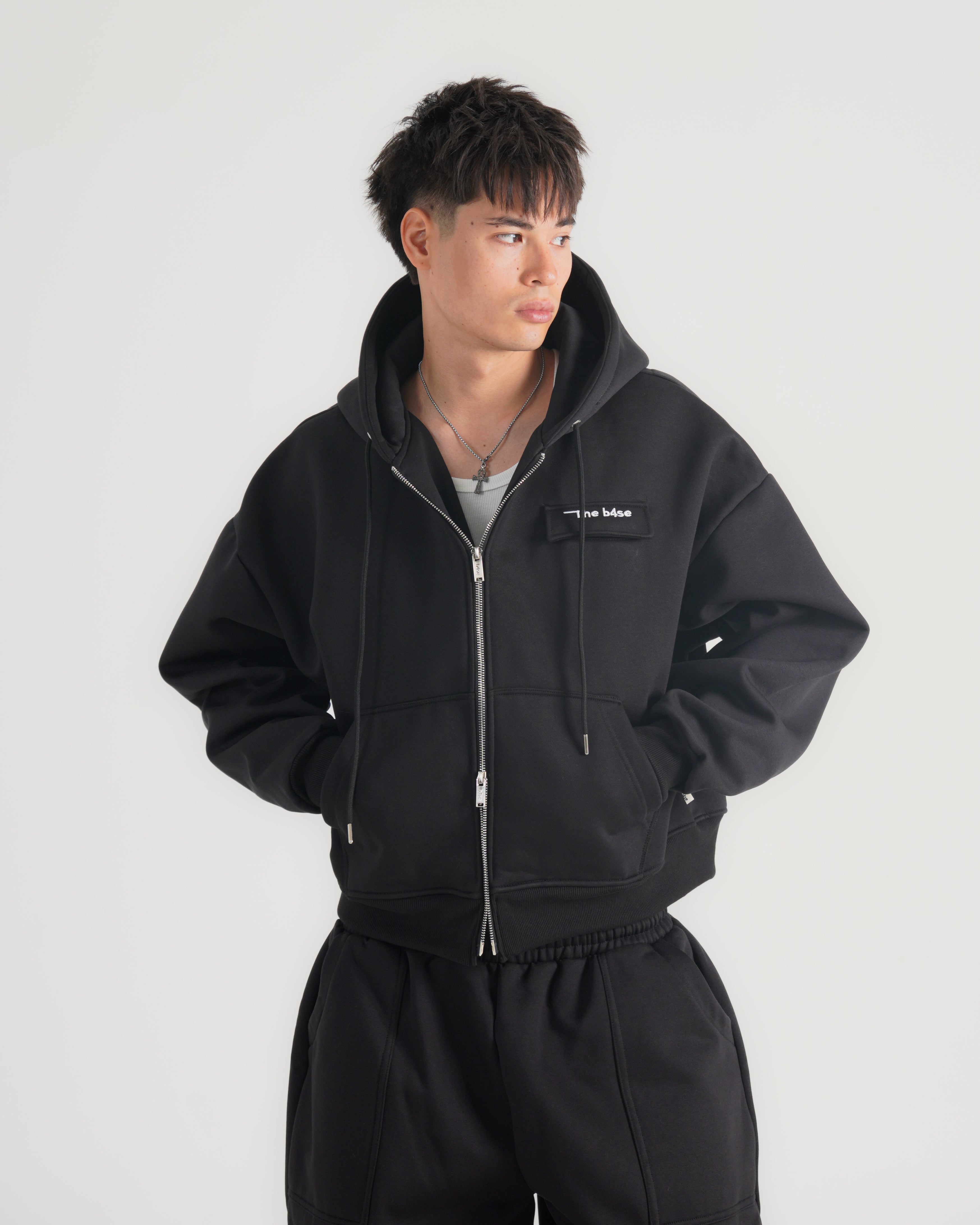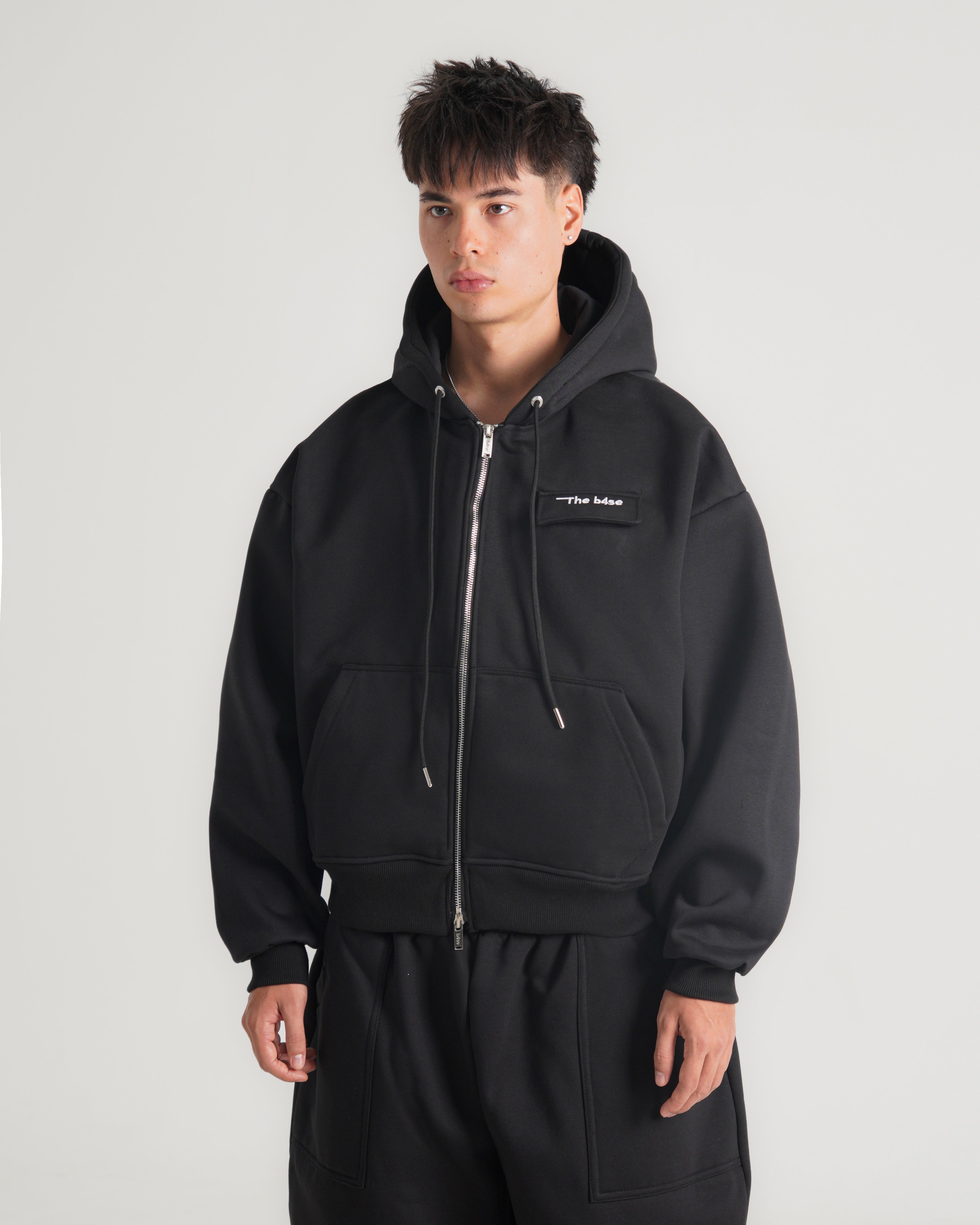 THE B4SE / BOXY ZIP UP - BLACK
